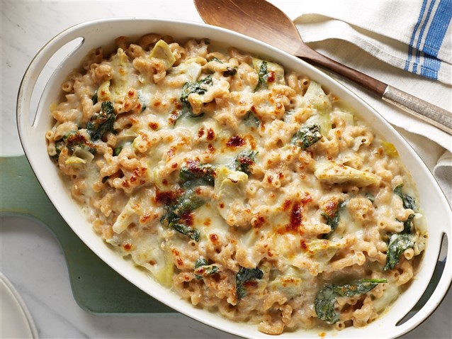 مكرونه بالجبن والسبانخ