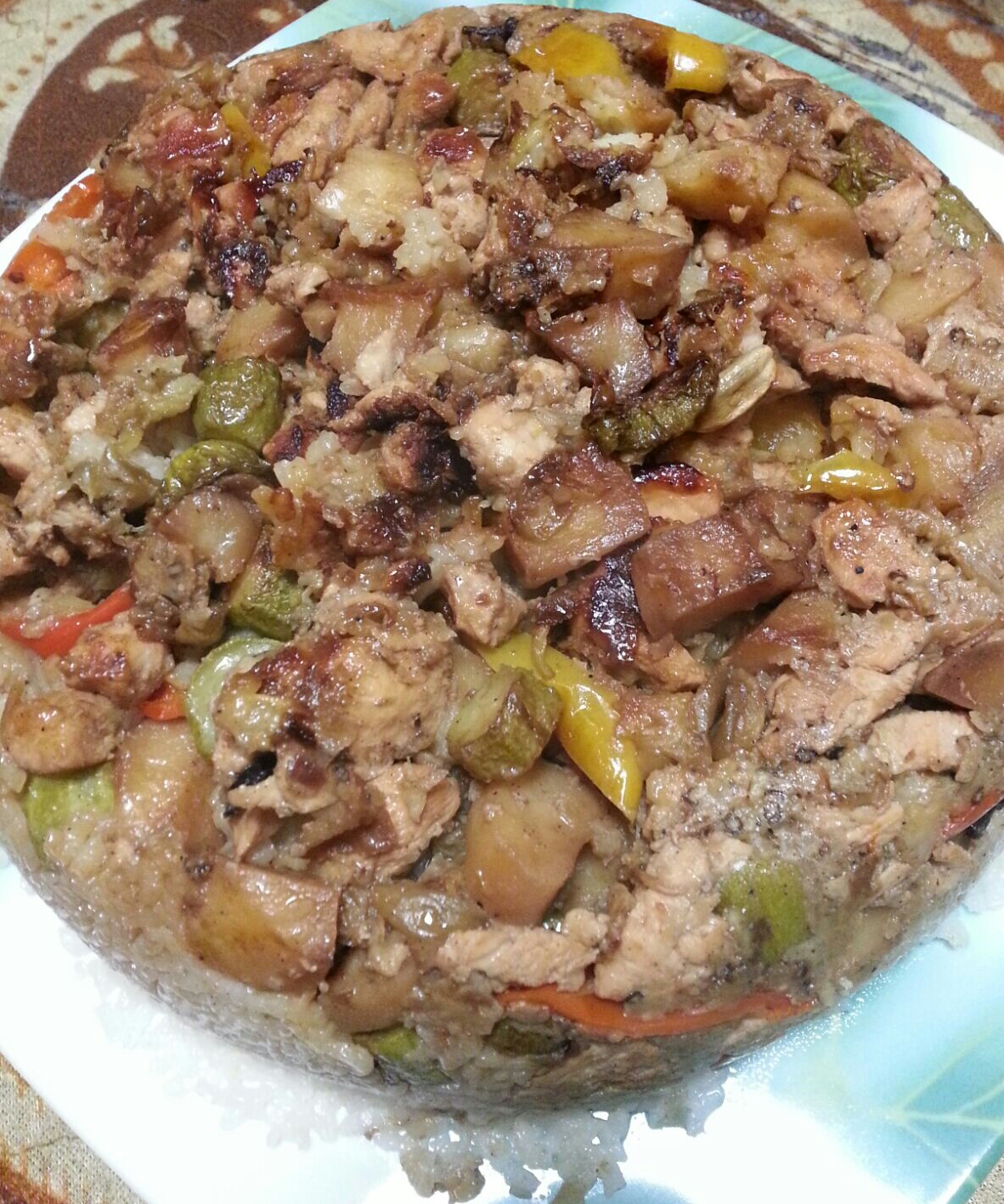 يمكن استبدال الدجاج باللحم ويمكن استخدام اى نوع خضارتفضلونه بشرط عم نضجه كاملا الا مع الارز